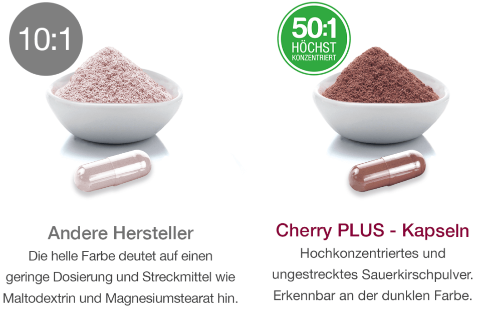 WebCherry PLUS Kapseln in geprüfter pharmazeutischer Qualität weisen neben dem höchst möglichen Konzentrationsverhältnis von 50:1 einen enorm hohen ORAC-Wert sowie. WebCherry PLUS Original - Kapseln. 100% Montmorency-Kirschpulver in veganer Kapsel; Höchstkonzentriert im Verhältnis 50:1; Pure Sauerkirsche - ohne Zuckerzusatz,. WebCherry PLUS aus der Montmorency-Sauerkirsche Hilft bei Entzüdungen, Arthritis, Gicht, Muskelkater und Schlafstörungen. Rezension aus Deutschland vom 3..