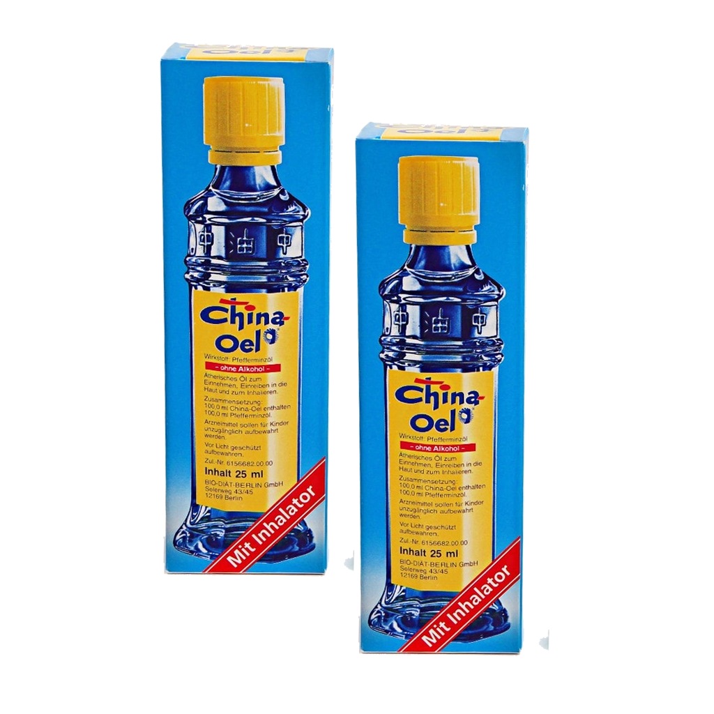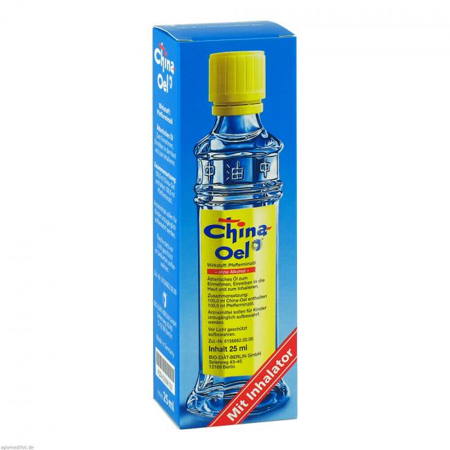 WebChina-Oel Wirkstoff: Pfefferminzöl Zur Einnahme bei krampfartigen Beschwerden der Gallenwege und des Magen-Darm-Bereiches, zur Einnahme oder Inhalation bei. WebChina- l + Inhalator, 25 ml. Marke: BIO-DIAET-BERLIN GmbH. 962 Sternebewertungen. | 9 beantwortete Fragen. 1344€ (13,44€ / stück) Preisangaben inkl. USt. Abhängig von der. WebChina-Oel ist seit über 60 Jahren ein traditionelles Arzneimittel in vielen deutschen Hausapotheken. Aus gutem Grund: Das ätherische Öl der Pfefferminze ist das. WebDer Inhalator liegt den Packungsgrößen mit 25 ml und 100 ml bei und kann auch separat erworben werden. Das Inhalieren von Pfefferminz-Öl lindert effektiv Erkältungs. WebChina Öl gilt als ein hochwirksames Mittel zur Linderung verschiedener Beschwerden wie beispielsweise Entzündungen, Schmerzen, Erschöpfungszustände oder Krämpfe. Es.