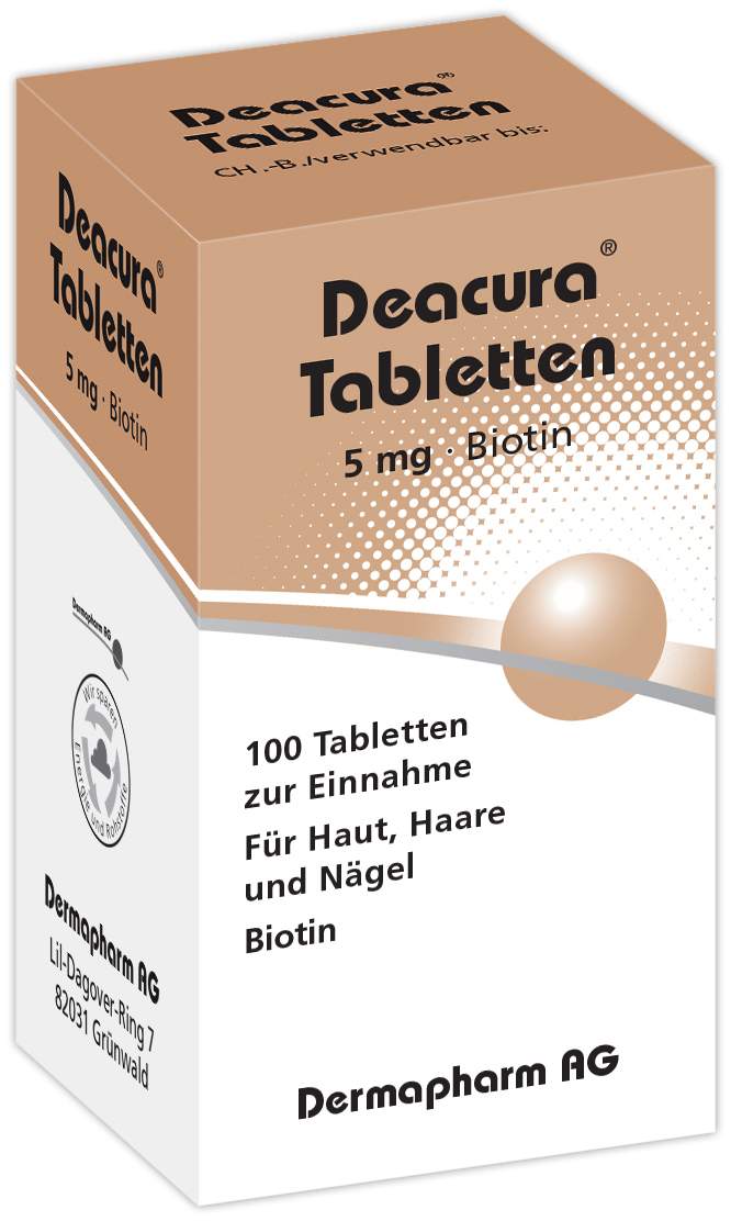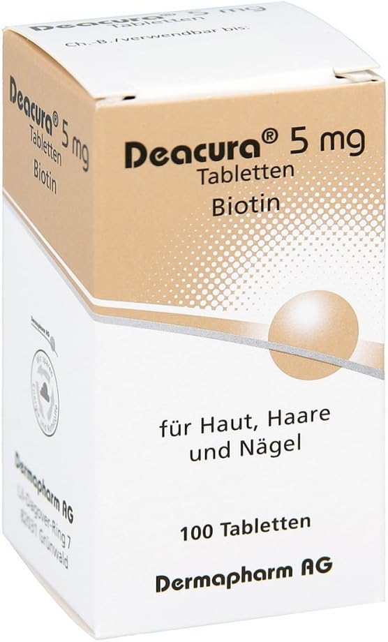 Deacura 5mg 100 Stück Preisvergleich. WebPreisvergleich für Deacura 5mg Tabletten, 100 Stück Produktinfo ⇒ Typ: Immunsystem & Vitalität • Anwendung: Biotin-Mangel • Darreichungsform: Tablette •. WebDeacura 5 mg ist ein Vitaminpräparat, das Sie anwenden, um einen Biotin-Mangel zu behandeln oder vorzubeugen. Es wird außerdem bei einem sehr seltenen Biotin..
