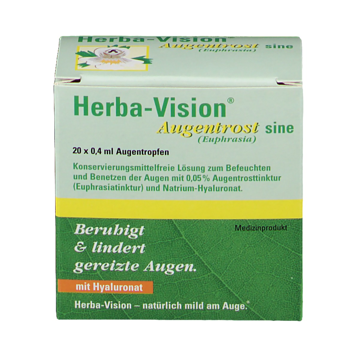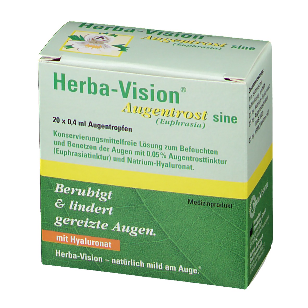WebHerba-Vision Augentrost Euphrasia MD Sine Augentropfen. Benetzende Augentropfen zur Befeuchtung der Augenoberfläche mit Hyaluronsäure & Augentrost. Zur Linderung. WebDieser Artikel: Herba-Vision Augentrost MD sine Augentropfen, 10 ml. 9,59 € (959,00 €/l) Mindestmenge erforderlich: 2. EyeMedica Euphrasia Augentrost Augentropfen ohne. WebHerba-Vision Augentrost MD sine (10 ML) Preisvergleich. Hilfe zum Preisvergleich Tel: 030 - 94 888 740 Di-Do von 10-15 Uhr. Mein medizinfuchs (Anmelden) Deutschlands. WebHerba-Vision ® Augentrost MD sine. Soothes & relieves irritated, strained and tired eyes, caused by general environmental factors, for instance. WebInformationen zum Medizinprodukt Herba-Vision® Augentrost sine (Euphrasia) von OmniVision GmbH Wirkstoff , ATC, S01XA20, Künstliche Tränen und andere indifferente. WebEntdecke AZELA-Vision MD sine 0,5 mg/ml Augentropfen 6 ml 10169131 in großer Auswahl Vergleichen Angebote und Preise Online kaufen bei eBay Kostenlose Lieferung für viele. WebHerba-Vision ® Augentrost MD sine ist für harte und weiche Kontaktlinsen geeignet und kann auch während des Tragens von Kontaktlinsen angewendet werden.. WebHERBA-VISION Augentrost MD sine Augentropfen 10 ml. Preisangaben inkl. USt. Abhängig von der Lieferadresse kann die USt. an der Kasse variieren. Weitere Informationen. Zu.