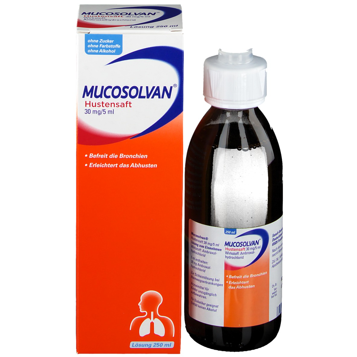 WebAuch im Beipackzettel ist die Dosierung für Erwachsene mit aufgeführt. Der Saft hat sehr gut geholfen, das Abhusten wurde erleichtert. Über 15 Jahre gute Erfahrungen mit dem Saft. WebMucosolvan Hustensaft. Schleimlöser Anwendungsgebiet Husten Wirkstoff Ambroxol ohne Farbstoffe ohne Farbstoffe Produktdetails. Achtung: Zu Risiken und. WebMucosolvan® Lutschpastillen 15 mg. Wirkstoff: Ambroxolhydrochlorid. Anwendungsgebiet: Zur Schleim lösenden Behandlung bei akuten und chronischen. WebMucosolvan Kindersaft ist eine Lösung zum Einnehmen, die den zähflüssigen Schleim in Hals und Bronchien löst und so ein Abhusten ermöglicht.. WebMucosolvan-Lutschpastillen werden auf die Zunge gelegt und zergehen daraufhin von selbst. Kinder von sechs bis zwölf Jahren nehmen zwei- bis dreimal. WebProduktinformationen. Mucosolvan löst den zähen Hustenschleim transportiert schonend den gelösten Schleim ab und schützt die Bronchien vor neuem Hustenschleim.. WebMucosolvan ® Hustensaft für Erwachsene ist mit 6mg/mL Ambroxol besonders hoch konzentriert und hilft somit auch bei hartnäckigem Schleim. Mucosolvan ®. WebMUCOSOLVAN Saft 30 mg/5 ml. von A. Nattermann & Cie GmbH. Befreit die Bronchien vom Schleim. Lässt frei Durchatmen. Erleichtert das Abhusten. Apothekenpflichtig.. WebAntwort: Im Allgemeinen darf der Arzt Saftzubereitungen in begründeten Ausnahmen auch für Erwachsene zulasten der GKV verordnen, z. B. bei Patienten mit.