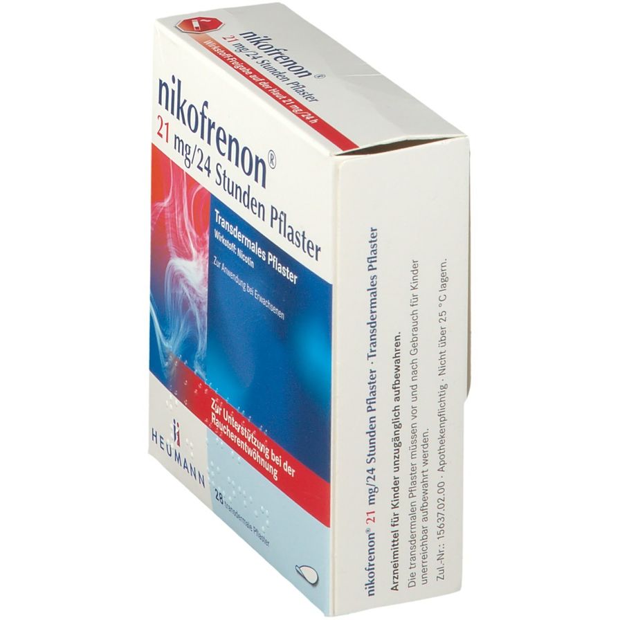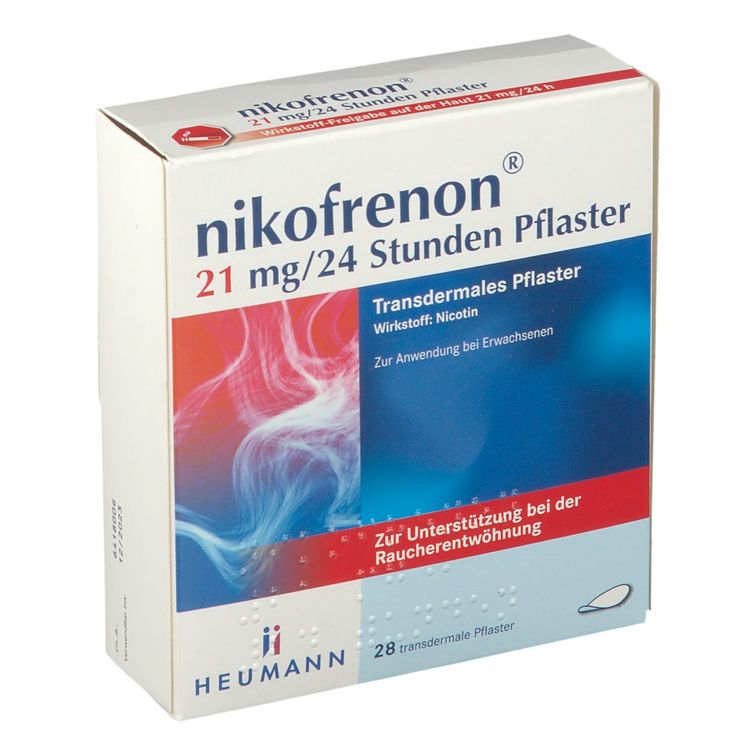 WebBeipackzettel nikofrenon 21 mg/24 Stunden Pflaster Indikation. Das Präparat ist ein nicotinhaltiges transdermales Pflaster zur Unterstützung bei der Raucherentwöhnung.. WebNikofrenon wird angewendet zur Linderung von Nicotinentzugssymptomen und zur Unterstützung der Raucherentwöhnung bei Nicotinabhängigkeit. Bei Beginn der. WebNikofrenon 21mg/24 Stunden Heumann 28 Stück von HEUMANN PHARMA GmbH & Co. Generica KG bestellen bei medpex Apothekenversand. × Ihre medpex. Webnikofrenon® 7 mg/24 Stunden Pflaster nikofrenon ist ein nicotinhaltiges transdermales Pflaster zur Unterstützung bei der Raucherentwöhnung. nikofrenon wird angewendet. WebNikofrenon 21mg 24std Pflaster (Packungsgröße: 28 stk) sind apothekenpflichtig und können in Ihrer Versandapotheke www.apo.com erworben werden. Hersteller:.
