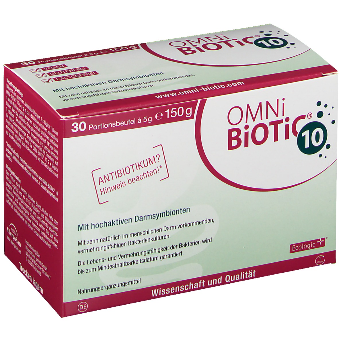 WebOMNi-BiOTiC 10® enthält pro Portion 5 Milliarden Darmbakterien aus 10 verschiedenen Stämmen, die natürlich im menschlichen Darm vorkommen. In wissenschaftlichen. WebOMNI BiOTiC 10 Pulver Beutel. Packungsgröße 20X5 g Artikelnummer: 13584824; Sofort lieferbar nur 24,76 € 2. Grundpreis: 247,60 € / 1 kg 2. Abb. ähnlich ... WebOMNI BiOTiC 10 Pulver Beutel 40x5 g "Nachschub" für den Darm: 5 Milliarden Darmbakterien aus 10 verschiedenen Stämmen. Anbieter: INSTITUT ALLERGOSAN. WebOMNi-BiOTiC 10 enthält pro Portion 5 Milliarden Darmbakterien aus 10 verschiedenen Stämmen, die natürlich im menschlichen Darm vorkommen. In wissenschaftlichen. WebOMNi-BiOTiC 10. Mit 10 wissenschaftlich ausgewählten Bakterienstämmen; Die enthaltenen Bakterienstämme siedeln sich nachhaltig im Darm an; gegen den „Kahlschlag“ im Darm;.