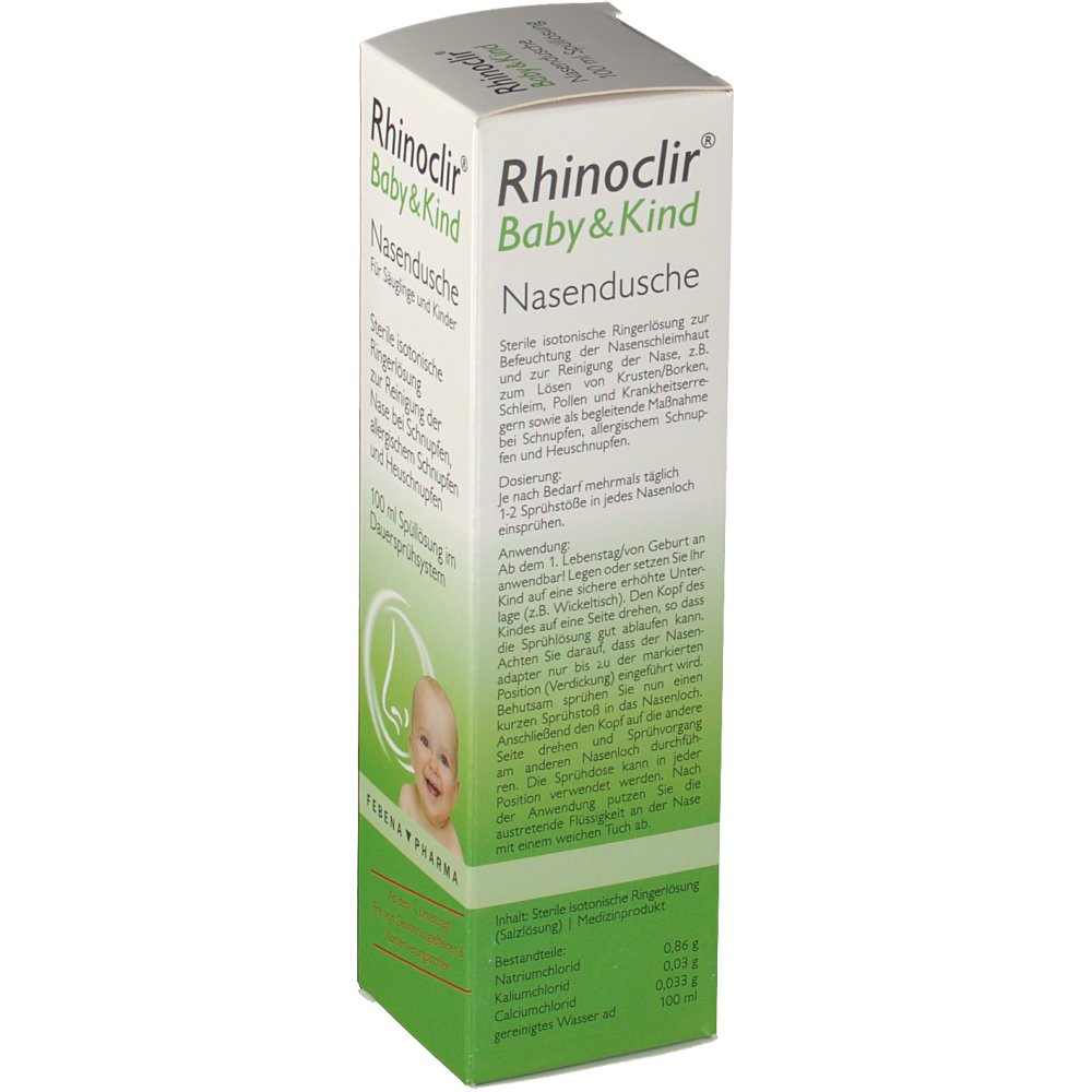 WebDie Nase war schnell wieder frei, als wir es täglich mehrmals verwendet haben. Mittlerweile schon bei drei Schnupfattaken erfolgreich verwendet. Ich finde allerdings, dass der Preis. WebRhinoclir Baby + Kind Nasendusche mit Ringerlösung (100ml) Nasendusche 100 ml Wirkstoff Natriumchlorid Produktdetails. Achtung: Zu Risiken und Nebenwirkungen lesen. WebEntdecke dein perfektes Rhinoclir baby & kind nasendusche aus unserer Rangliste der besten Produkte. Willkommen bei Ihrer Suche nach dem gewünschten. WebRhinoclir® Baby & Kind Nasendusche mit steriler isotonischer Ringerlösung. • Reinigt die Nase bei Schnupfen und allergischem Schnupfen. • Milde und verträgliche Reinigung der. WebDie Rhinoclir Baby & Kind Produkte sch tzen und pflegen Ihr Kind vom ersten Lebenstag an. Die von Experten entwickelten Produkte sind speziell auf die Therapie von Baby- und.