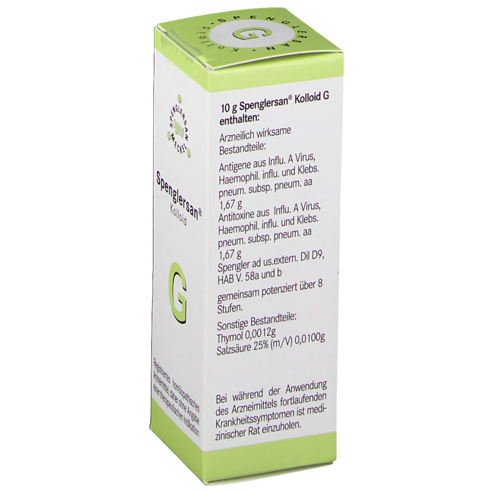WebMeckel-Spenglersan Kolloid G Einreibung (20 ml) Homöopathisches Mittel 20 ml Einreibung Produktdetails. Achtung: Zu Risiken und Nebenwirkungen lesen Sie die. WebSpenglersan® Kolloid G ist ein homöopathisches Arzneimittel. Mischung zur Anwendung bei Erwachsenen, Kindern und Säuglingen. Pflichtangaben: Spenglersan® Kolloid. WebDas Spenglersan® Kolloid G ist ein homöopathischer, mikrobiologischer Immunmodulator, der schon bei den ersten Anwendung das Immunsystem aktiviert. Hinweise zur. WebZusätzlich empfiehlt er das Mittel Spenglersan® Kolloid G in die Ellenbeugen zu sprühen und einzureiben. Es enthält Antigene und Antitoxine dreier verschiedener Erreger von. WebSpenglersan Kolloid G ist ein natürliches Arzneimittel zur Anwendung bei entzündlichen Prozessen. Hierzu gehören grippale Infekte jeglicher Art, wie Sinusitis.