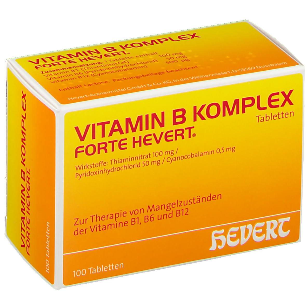 WebVitamin B Komplex forte Hevert enthält die hochdosierten B-Vitamine Vitamin B1 (Thiamin), Vitamin B6 (Pyridoxin) und Vitamin B12 (Cyanocobalamin). Diese einzigartige. .