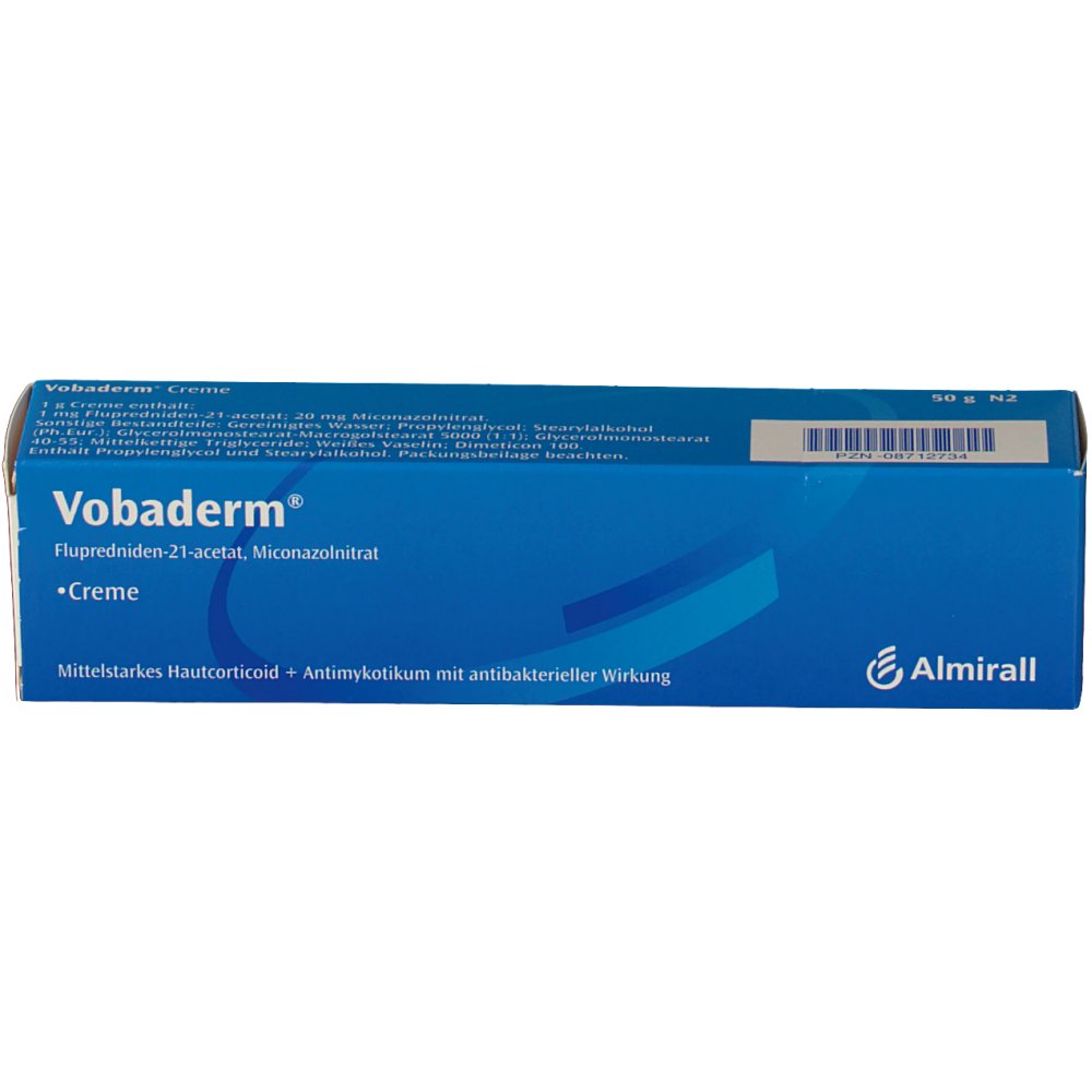 WebInformationen zum Medikament Vobaderm Emra Creme von Emra-Med Arzneimittel GmbH mit Wirkstoff Flupredniden 21-acetat, Miconazol nitrat (ATC D07XB03. WebVobaderm Creme von Almirall Hermal GmbH ist ein Arzneimittel. Vobaderm Creme ist in den Packungsgrößen zu 50 g und 20 g verfügbar. Bitte lesen Sie vor der Anwendung. WebDas Glukokortikoid Flupredniden-21-acetat ist eine Substanz, die den in der Nebennierenrinde erzeugten Hormonen nachgebildet wurde und bei lokaler Anwendung. WebVobaderm ist ein mittelstarkes Hautcorticoid + Antimykotikum mit antibakterieller Wirkung. Vobaderm wird angewendet zur Anfangstherapie von. WebDas Glukokortikoid Flupredniden-21-acetat ist eine Substanz, die den in der Nebennierenrinde erzeugten Hormonen nachgebildet wurde und bei lokaler Anwendung. WebVobaderm anwenden. Besondere Vorsicht bei der Anwendung von Vobaderm ist erforderlich- bei verdünnter Haut, Wunden und Hautgeschwüren. Vobaderm sollte nicht. WebVobaderm® 1 1. BEZEICHNUNG DES ARZNEIMITTELS Vobaderm 2. QUALITATIVE UND QUANTITATIVE ZUSAMMENSETZUNG 1 g Creme enthält 1 mg Flupredniden-21-acetat. WebVobaderm 1mg/0.9mg/20mg CRE, flupredniden, flupredniden 21-acetat, flupredniden 21-acetat + flupredniden + miconazol nitrat, miconazol nitrat, Anwendungsgebiete,. WebVobaderm ist ein mittelstarkes Hautcorticoid + Antimykotikum mit antibakterieller Wirkung. Vobaderm wird angewendet zur Anfangstherapie von oberflächlichen entzündlichen. WebVobaderm ist eine weiße bis gebrochen weiße Creme. Vobaderm ist in Aluminiumtuben mit 2 x 15 g und 3 x 15 g Creme erhältlich. Pharmazeutischer Unternehmer und Importeur.