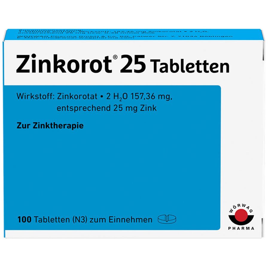 WebDie Zinkorot 25 Tabletten sind ein Arzneimittel mit Zinkorotat, das zur Behebung eines Zinkmangels angwendet wird. Es wird immer dann angewendet, wenn der Zinkmangel. WebZinkorot 25 Tabletten mit Zinkorotat. Nur 1x täglich, 20 Stück. BEI ZINKMANGEL: Zinkorot 25 ist ein Arzneimittel zur Behandlung von Zinkmangelzuständen, die. WebZinkorot 25 Tabletten - Ein lebensnotwendiges Spurenelement für Menschen. Zink wird überall im Körper für die Funktion von mehr als 100 verschiedenen Botenstoffen benötigt. WebZinkorot 25 mg ist ein Arzneimittel zur Behandlung von Zinkmangelzuständen, sofern sie durch übliche Ernährung nicht behoben werden können. Zinkorot 25 mg: Dosierung und. WebZinkorot 25mg. Inhalt: 100 Stück, N3. Anbieter: Wörwag Pharma GmbH & Co. KG. Darreichungsform: Tabletten. Grundpreis: 1 Stück 0,23 €. Art.-Nr. (PZN): 18082903.. WebZinkorot 25 Tabletten enthält den Wirkstoff Zinkorotat, ein Arzneimittel zur Zufuhr (Substitution) von Zink bei Zinkmangel. Zink ist ein essenzielles Spurenelement, und an.